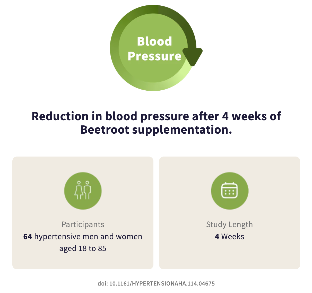 NUMEROUS SCIENTIFIC STUDIES HAVE OBSERVED LOWER BLOOD PRESSURE AND IMPROVED BLOOD FLOW AFTER BEETROOT SUPPLEMENTATION