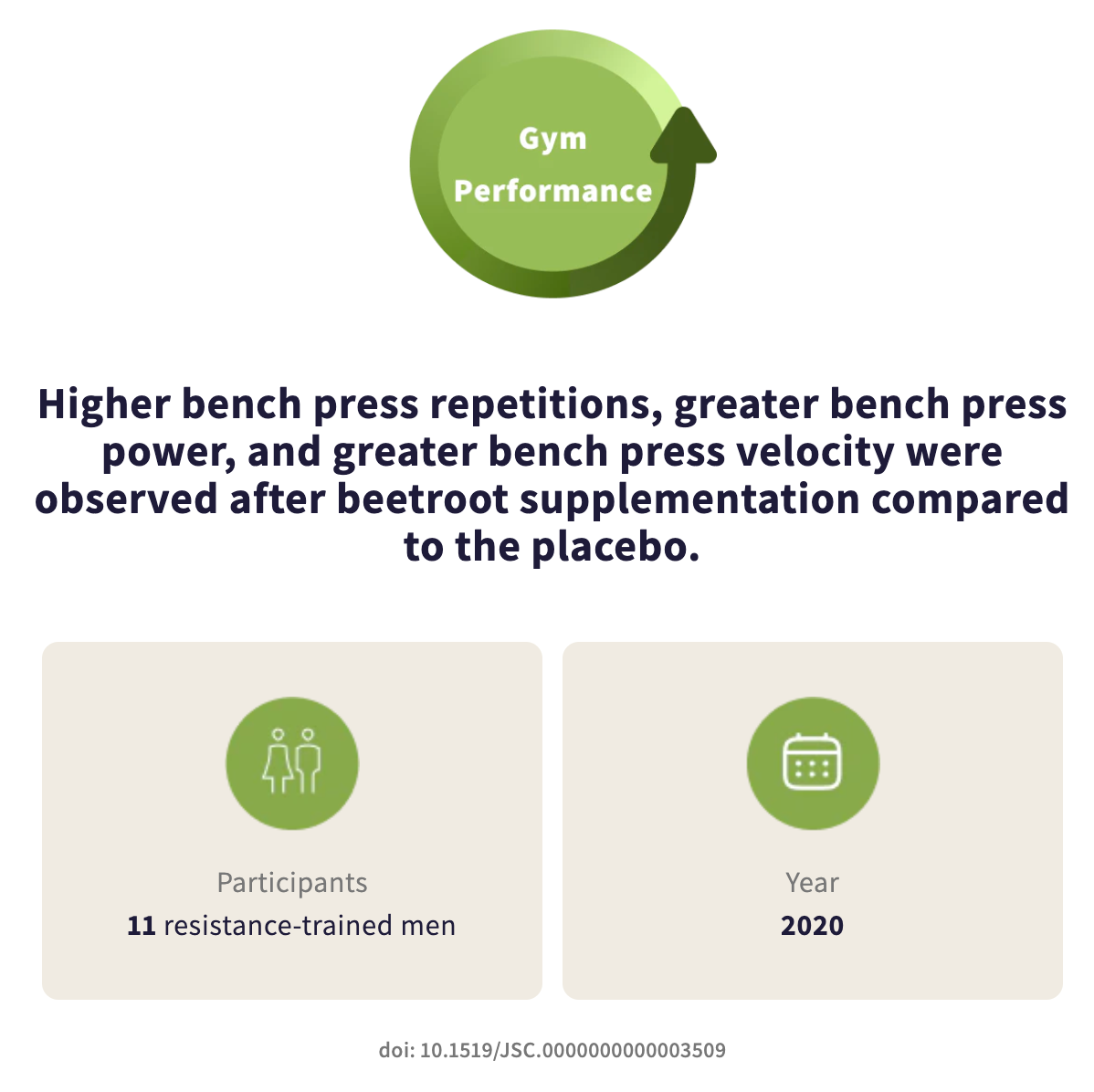 Scientific studies have found correlations between beetroot supplementation and improvements in strength and endurance in sports such as weightlifting, cycling, running and martial arts.